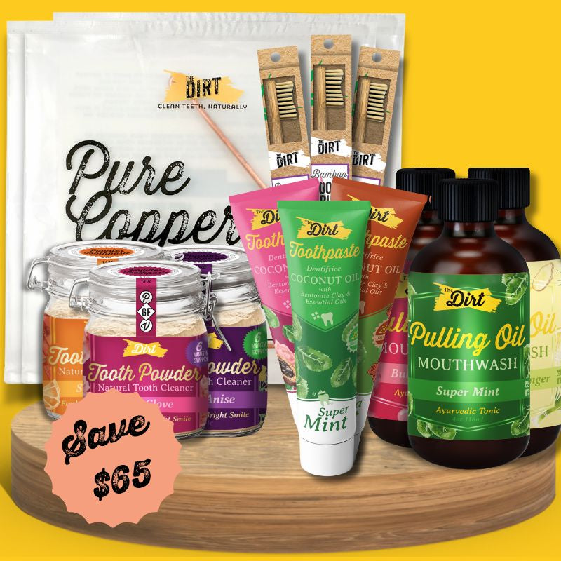 Stock your bathroom cabinet with The Household Heroes Pack—your family's ticket to naturally radiant smiles. This bundle brings together three of our most-loved formulas, giving everyone in the house their own supply of clean, fresh oral care. From kids to adults, each family member gets the products they love, minus the constant restocking runs. Because great teeth shouldn't require a shopping expedition!